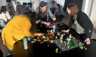 The first session of the day introduced a creative systems-mapping exercise using Lego. Participants worked in small groups to construct models representing the relationships between digital environments, social influences, and potential points of intervention.