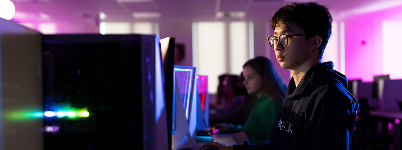 Students have the opportunity to be part of a vibrant community of active researchers and take part in extracurricular activities such as performance and games workshops, game jams, and national competitions. Students also have access to a specialist development laboratory, industry-standard software development environments, 3D modelling software, and virtual reality systems. Software development environments such as Unreal Engine 4, Unity Pro, and Visual Studio play a major part in the practical elements of the course.