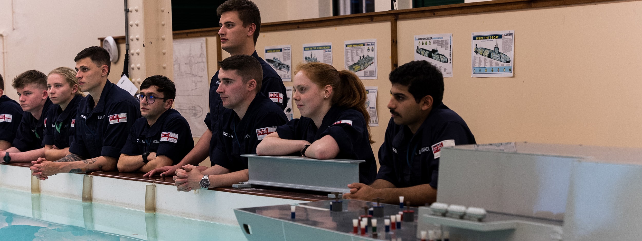 In particular, the programme includes extensive work-based and placement learning packages at sea during both initial and specialist training phases. The aim in both cases is to instil Officers Cadets with an understanding and appreciation of the fundamental workings of a warship at sea. The time at sea aims to develop maritime skills, conditions Officer Cadets to the rigours of life at sea, and provides a baseline for their first complement appointments.